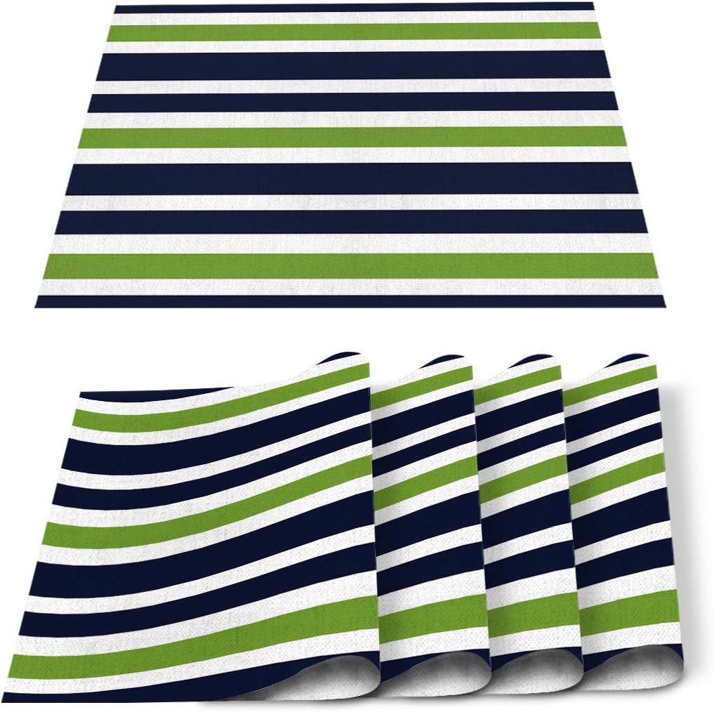 Uр Tо 40% оƒƒ Placemats for Dining Table Set of 6, Navy Blue Lime Green and White Striped Table Mats Stain Resistant Heat Insulation Non-Slip Washable Table Decoration for Kitchen, Modern Design A quick website review